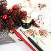 Vul deze Kerst je kalligrafie letters aan met de elegante spitse penstroken en stijlvolle aquareltechniek die je in de online cursus 'The Christmas flourish' leert, en maak unieke kerstdecoraties — gebruik deze voor sierlijke naamkaartjes, cadeau labels en creëer betoverende kerstornamenten op wenskaarten en enveloppen.